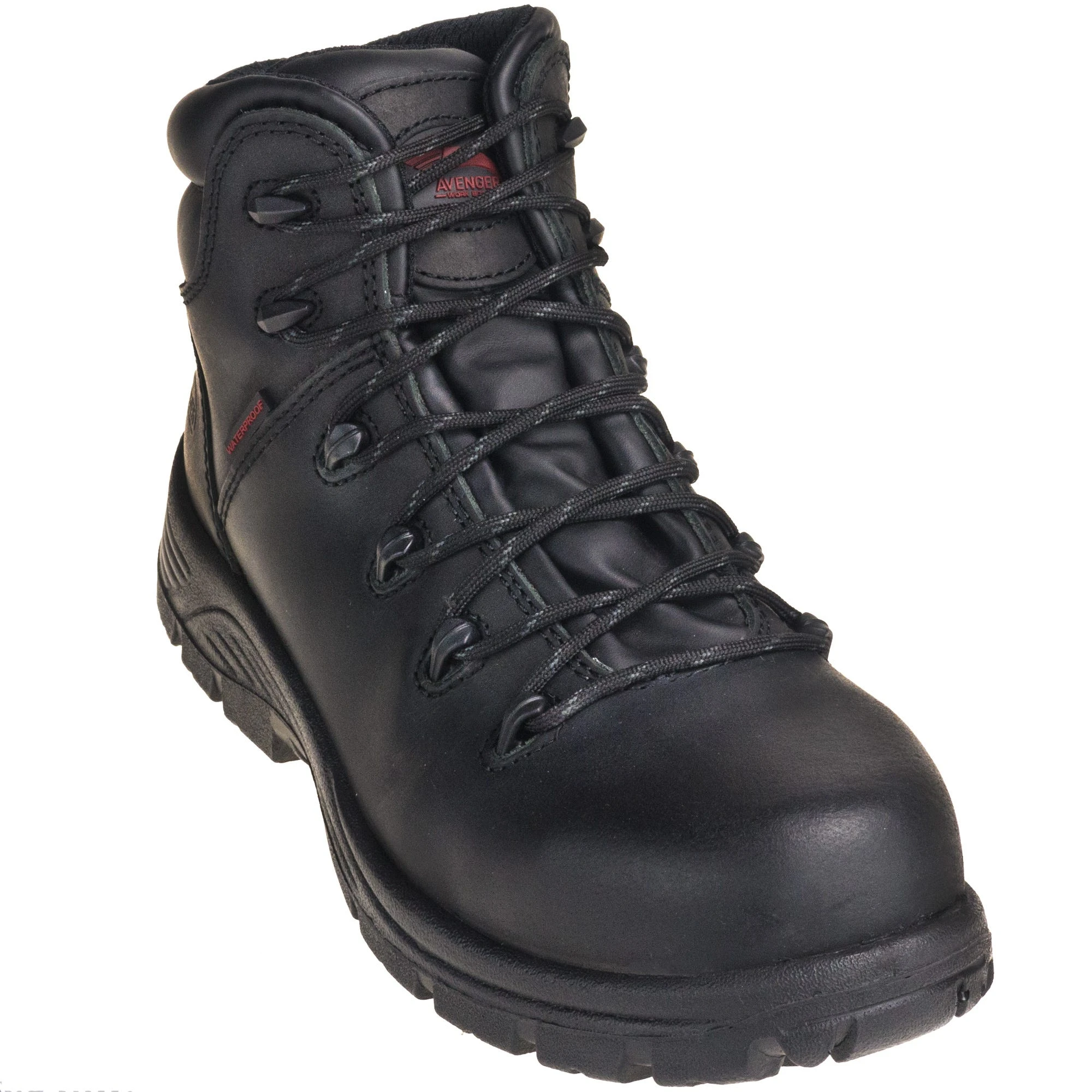 This is one pair of work boots that’s not messing around – especially not when it comes to your safety, comfort, or your ability to get the job done. When you’re headed out to a hazardous job site or just a plain old long day on your feet, you should be doing it in the kind of men’s footwear that’s as ready for the task at hand as you are. Now you can, thanks to the ~Avenger A7223 Men’s Black Puncture-Resistant Waterproof Composite Toe EH Hiker Boots. With safety toe caps, waterproof protection, rugged leather exteriors, and no exposed metal to meet scratch-resistant requirements at your workplace, you’ll be more than set when you’re wearing these Avenger boots.