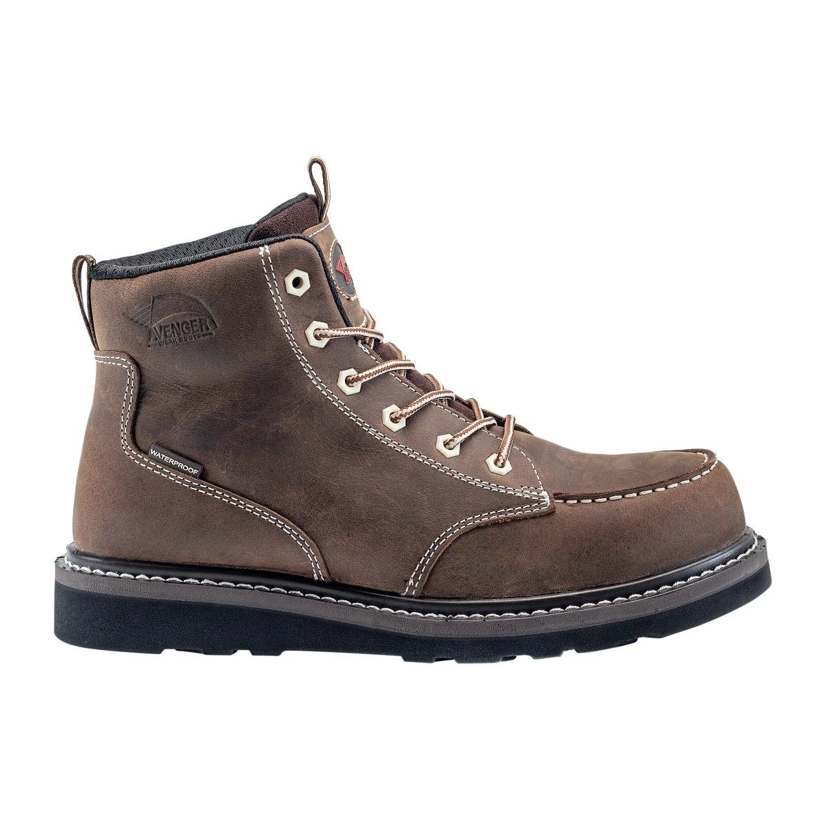 Avenger Boots: Men’s A7607 Brown Soft Toe 6″ Waterproof EH Moc Wedge Work Boot