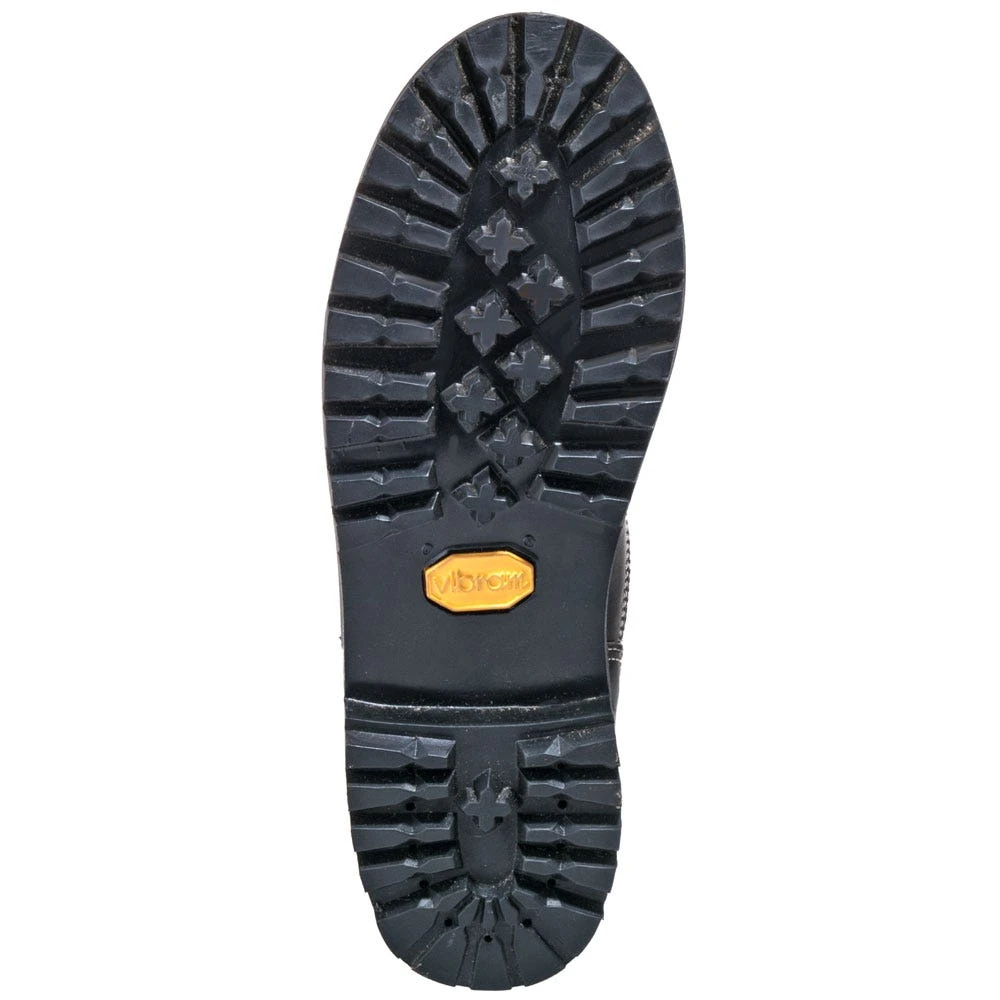 The stitchdown Vibram thick rubber soles are oil-resistant as well as extremely durable. You’ll get a wider platform to stand on, giving you stability underfoot. This Vibram 132 Montagna outsoles feature lugs that are angled to provide you with substantial support, whether you’re climbing or descending a hill. These center lugs combine with the unique Vibram rubber compound, so you’ll get excellent traction on wet and dry surfaces. Four heavy duty steel eyelet grommets for lacing on the bottoms, and four steel hooks at the top-with one extra steel eyelet at the very top for tight lacing on these slip-resistant boots.