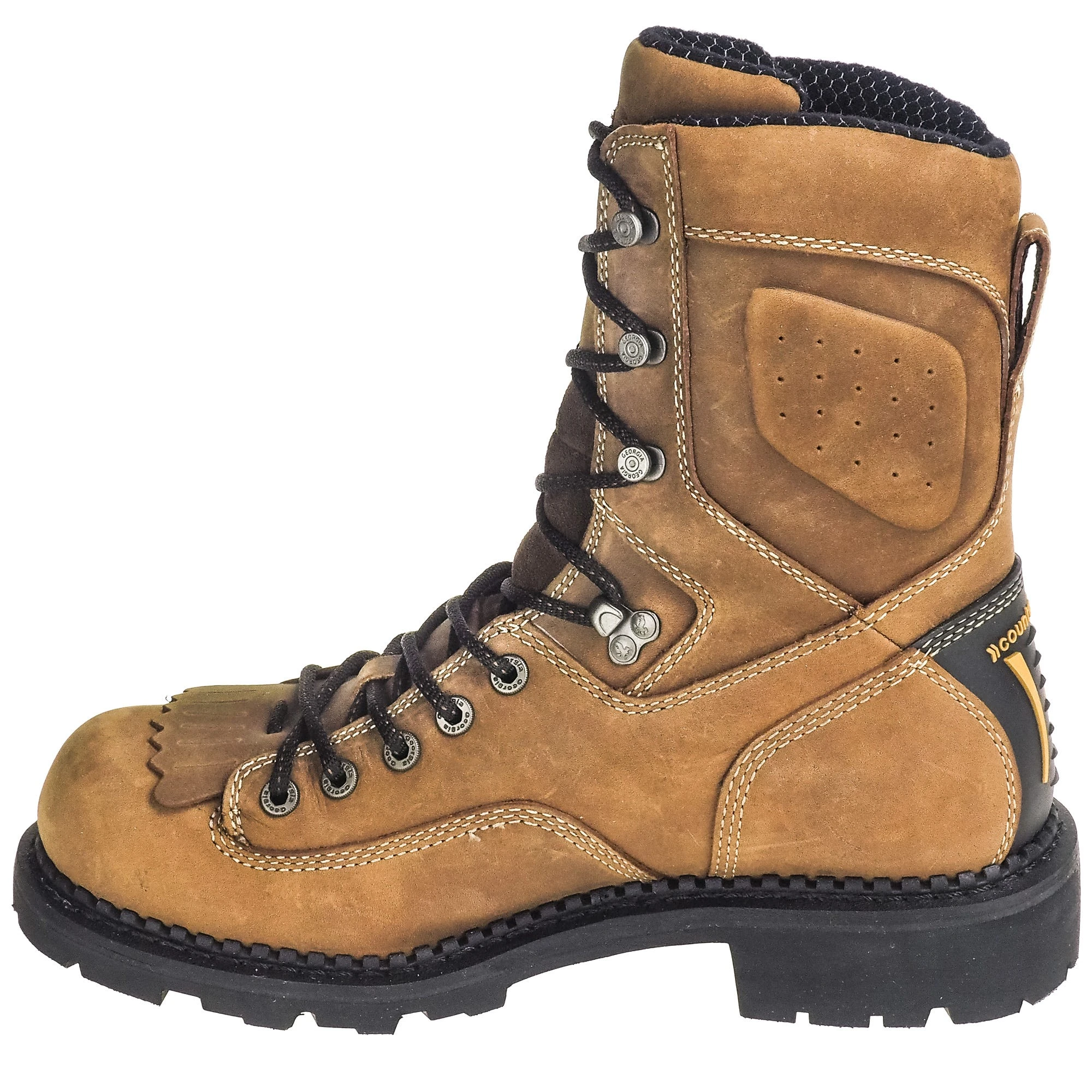 Durability in these men’s waterproof boots isn’t limited to the waterproofing. The lacing system features the use of milled brass hardware. Milled brass is known for its longevity in comparison to other metallic materials. In addition, the laces of these brown logger boots are a premium nylon material. To further increase the durability of these 8-inch slip-resistant boots, there’s a removable brush guard kiltie. This kiltie helps keep brush and twigs out of your men’s Comfort Core boots. We figure that feature is no doubt something a logger would be comfortable with.