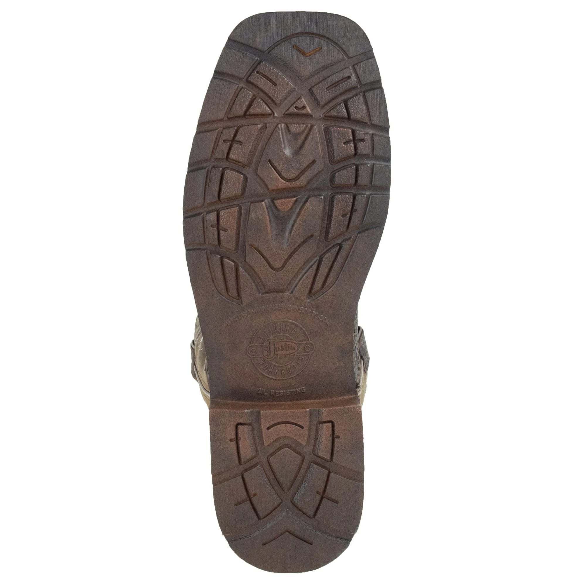 From the ranch to the construction site to thousands of other workplaces out there, these steel toe brown boots are there to protect you. That comes from within, too. Keeping your feet comfortable is important as well. That’s why Justin added Stampede™ orthotic insoles to deliver all-day comfort to your steps. You’ll have a supportive cushion from below to reduce foot fatigue from standing, walking, lifting, and riding. All the way below your feet between you and the ground or floor are Stampede™ dual-density rubber outsoles to give you dependable traction, and these rugged rubber and EVA combination outsoles also resist breakdown from extended wear.