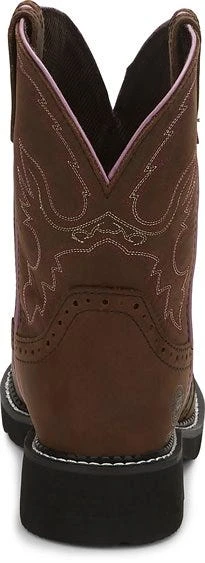 These Justin boots feature an 8″ aged bark with a diamond cut pull strap, so it’ll last some for time! The foot is aged bark—a material that looks great and holds up well. You’ll delight in the Gypsy round toe with a steel shank. These steel toe boots are ASTM electrical hazard rated, too. The outsole is a black rubber unit logger, so it will last for years to come. They feature the J-Flex comfort system, so you can feel good in knowing these women’s boots will keep you comfortable the entire workday long.