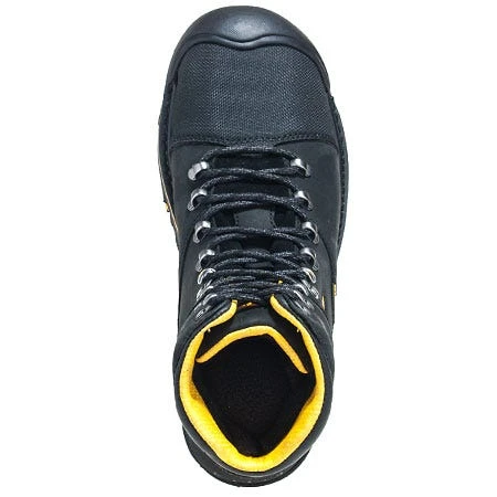 Bold yellow accents brighten up the black leather used to make the distinctive uppers of these KEEN Utility boots. The full-grain leather of these Milwaukee boots is durable stuff, made for flexibility and hard-wearing strength. It’s also waterproof, and capable of keeping you dry even in ugly and uncomfortable weather conditions. Full-grain is a tough material with the unique ability to stay soft and flexible around your feet, even when it’s wet while wearing these safety toe boots.